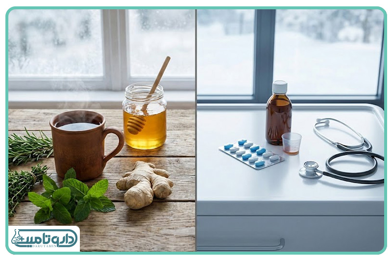 با فرا رسیدن فصل زمستان و افت محسوس دمای هوا، تغییرات بنیادینی در محیط زندگی و حتی فیزیولوژی بدن ما رخ میدهد. هوای سرد و خشک زمستانی باعث کاهش رطوبت طبیعی مخاط تنفسی میشود و همین خشکی، سد دفاعی اولیه بدن را در برابر عوامل بیماریزا ضعیف میکند. ویروسهای تنفسی که در محیطهای سرد و فضاهای بسته با تهویه نامناسب به راحتی تکثیر پیدا میکنند، منتظر کوچکترین فرصت برای نفوذ به بدن انسان هستند. با بروز اولین نشانههای بیماری مثل احساس خارش و سوزش در گلو، عطسههای پیاپی، آبریزش بینی و احساس خستگی و کوفتگی مفرط، یک دوراهی بزرگ و چالشبرانگیز برای همه ما شکل میگیرد. مسیر اول، پناه بردن به دستاوردهای داروسازی نوین و استفاده از ترکیبات شیمیایی است که وعده کنترل سریع و قاطع علائم را میدهند. مسیر دوم، بازگشت به آغوش طبیعت و بهرهگیری از عصارههای شفابخش گیاهی است که حاصل قرنها تجربه بشری و دانش طب سنتی به شمار میروند. انتخاب مسیر درست و منطقی در این شرایط بحرانی، نیازمند آگاهی عمیق از وضعیت جسمانی، شدت بیماری و مکانیسم اثر هر یک از این روشهای درمانی است. بسیاری از افراد در همان ساعات اولیه شروع بیماری دچار سردرگمی شدیدی میشوند و برای پیدا کردن یک راهکار مطمئن و تهیه اقلام درمانی به دنبال مراجع معتبر میگردند تا بتوانند بدون اتلاف وقت، روند بهبودی خود را آغاز کنند. بررسی دقیق و علمی این دو رویکرد، به ما ابزاری میدهد تا به دور از تعصبات رایج، بهترین شرایط را برای بازسازی قوای جسمانی و مقابله با عفونت فراهم آوریم.