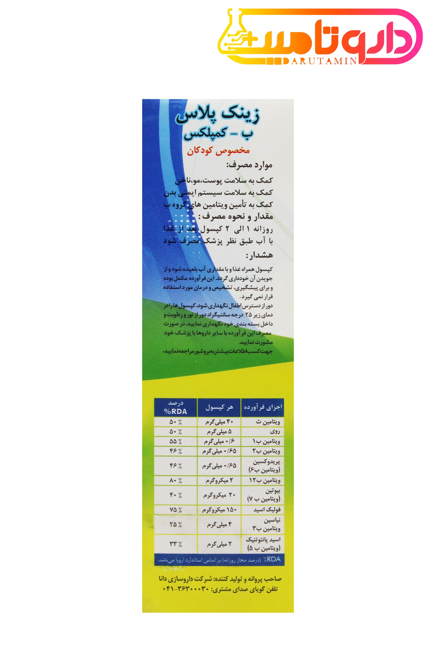 کپسول زینک پلاس ب کمپلکس کودکان و نوجوانان دانا فارما