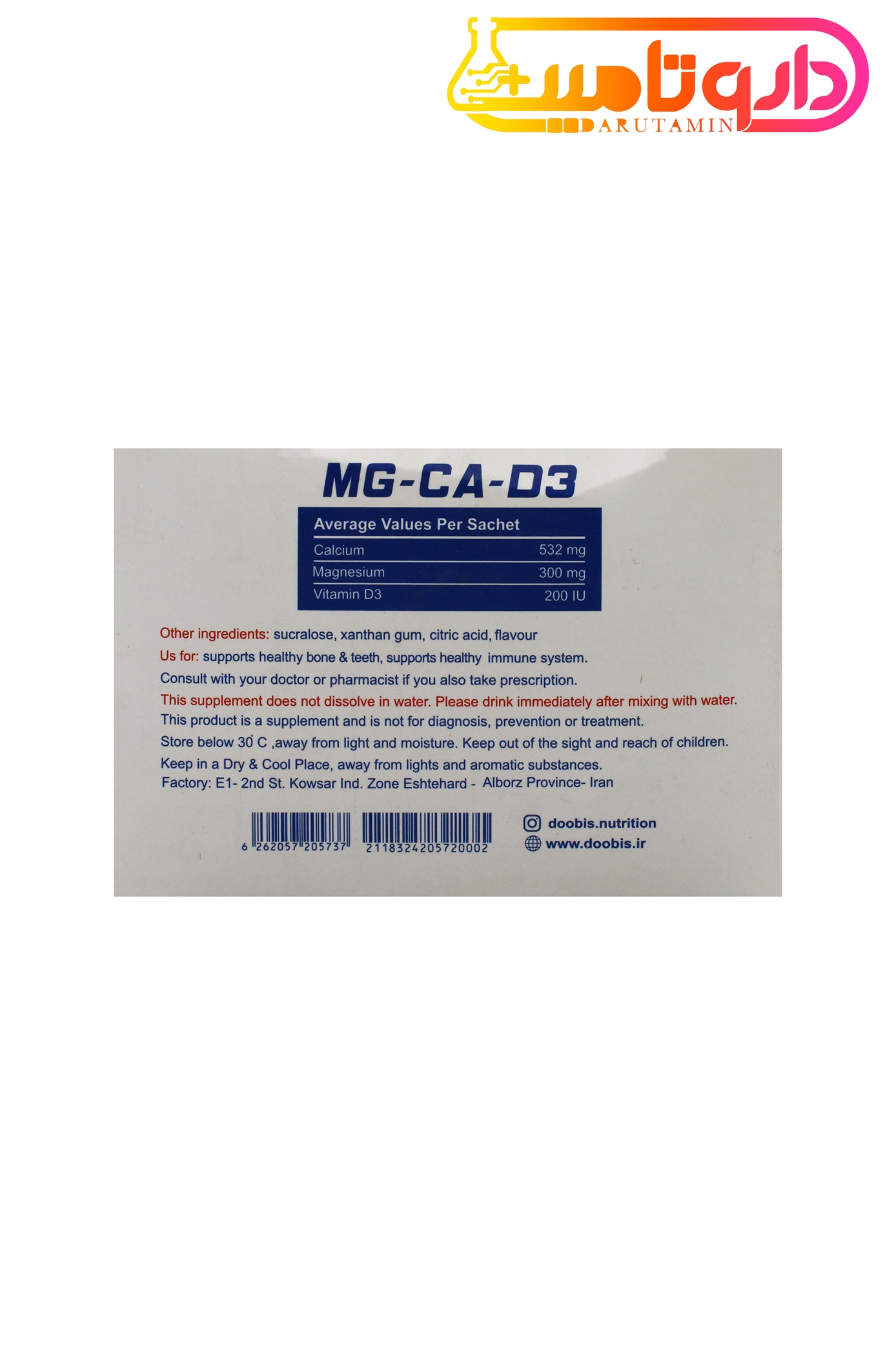 DooBis Magnesium And Calcium And D3 Sachetصادر کننده مجوز