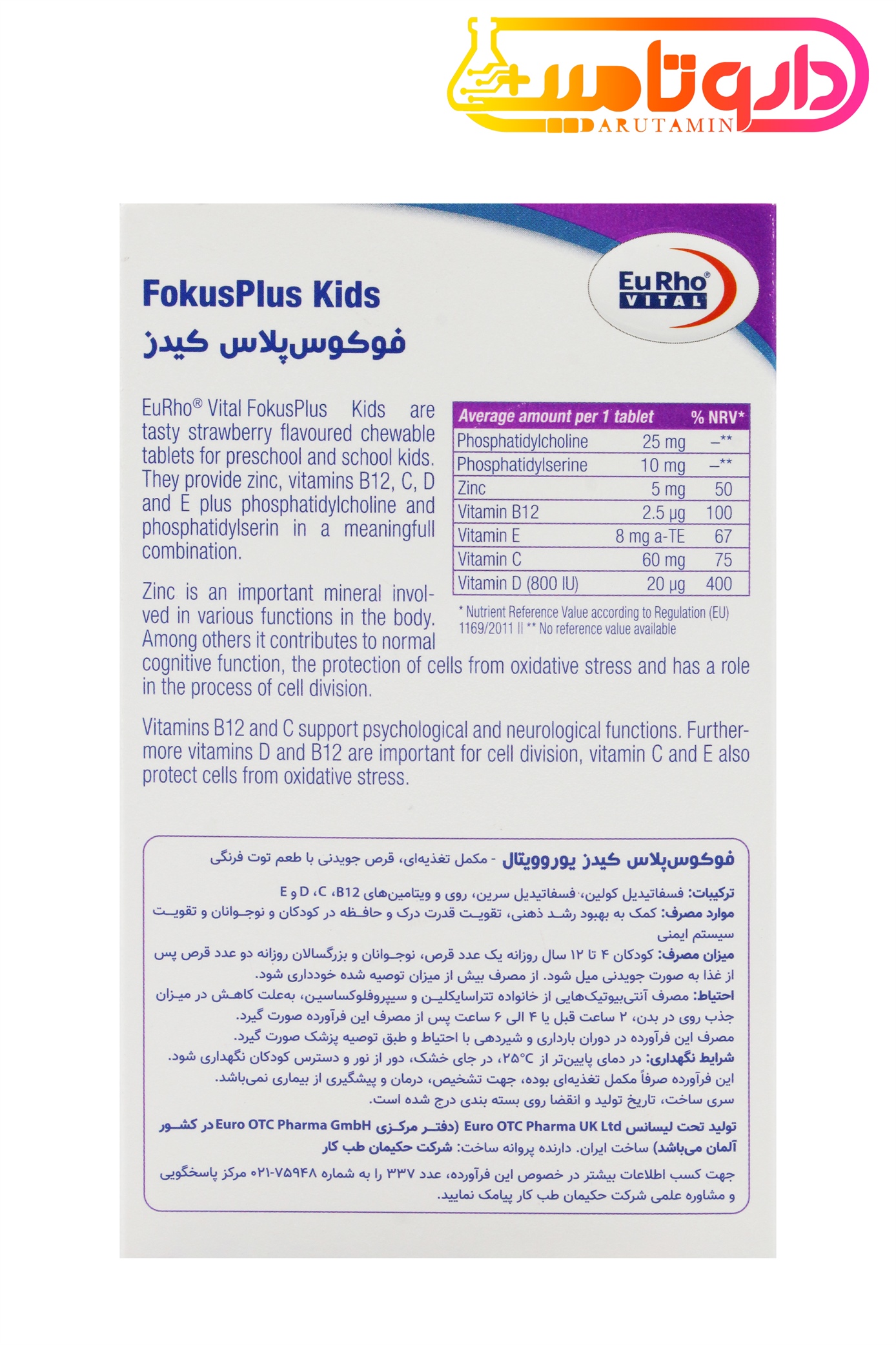 قرص جویدنی فوکوس پلاس کیدز یوروویتال