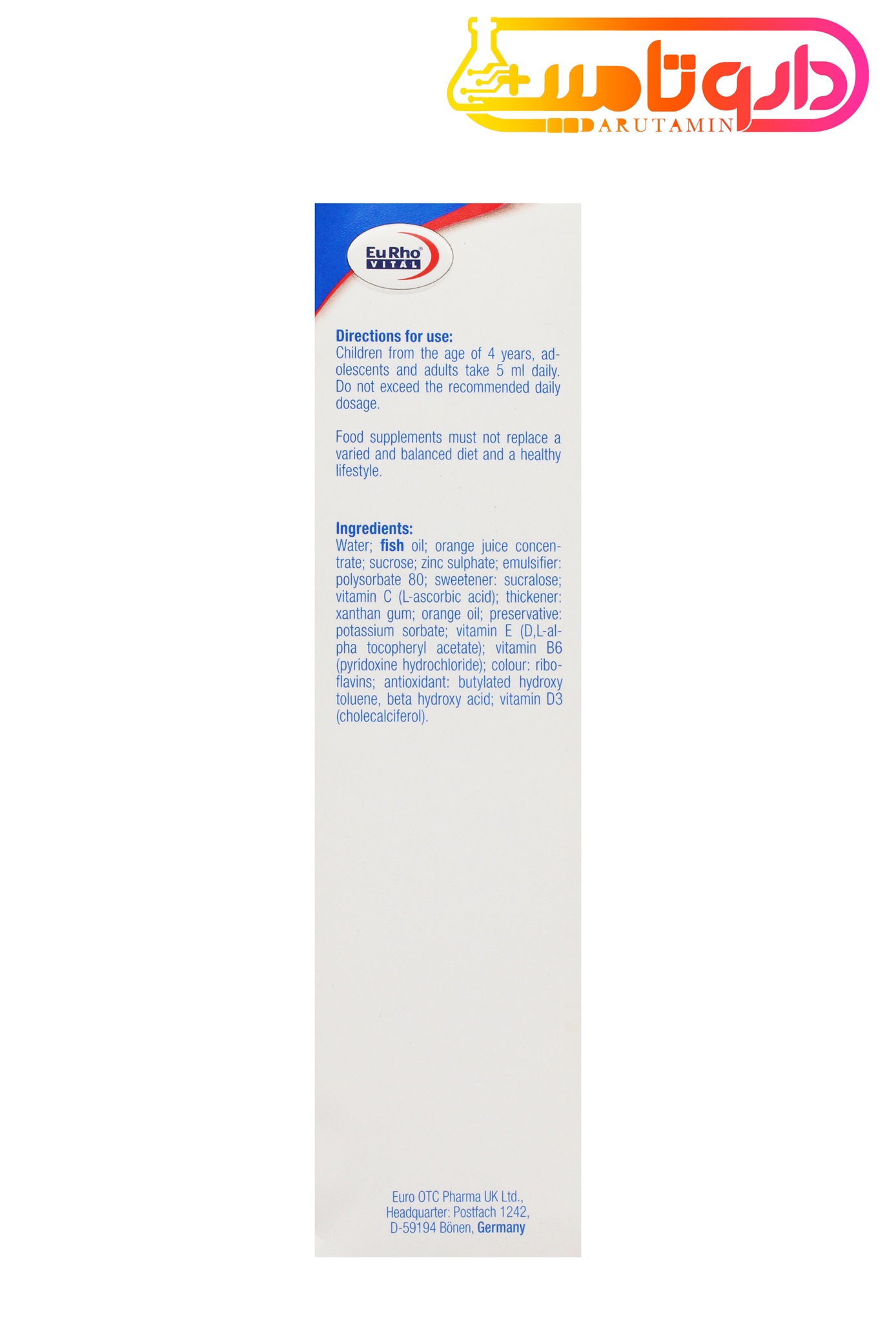 Eurho Vital Omega 3 Plus Zink Kids Syrupصادر کننده مجوز