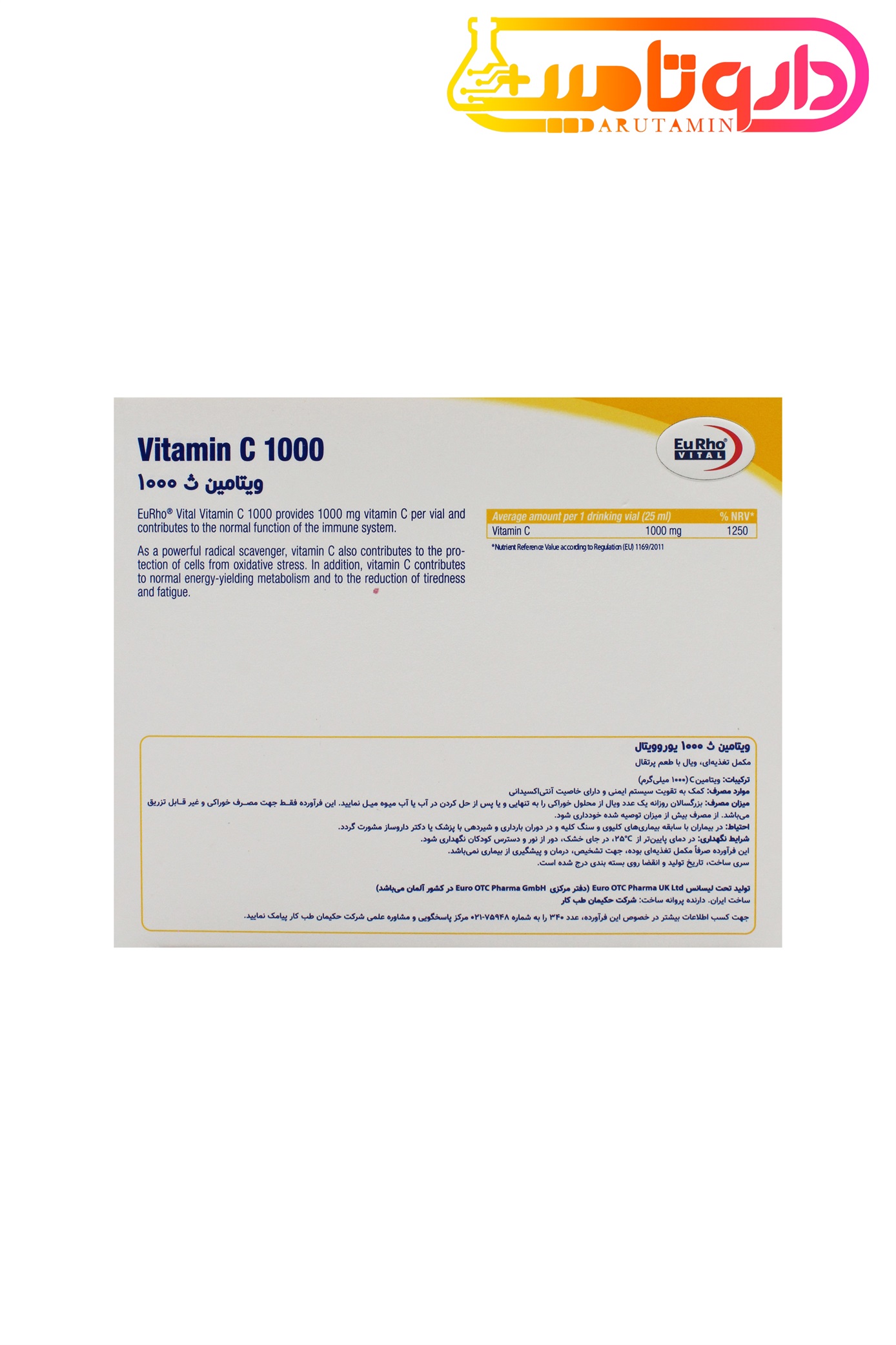 ویال خوراکی ویتامین ث 1000 یوروویتال یک مکمل غذایی قدرتمند برای تقویت سیستم ایمنی و حفظ سلامت کلی بدن است. این محصول با دوز مناسب و جذب سریع، به تقویت سیستم دفاعی بدن، بهبود سلامت پوست و مو، و پیشگیری از بیماریهای مزمن کمک میکند. با خواص آنتیاکسیدانی قوی، این ویالها از بدن در برابر آسیبهای ناشی از رادیکالهای آزاد محافظت کرده و به حفظ جوانی و شادابی کمک میکنند. برای بهرهمندی از مزایای این مکمل ارزشمند و سرمایهگذاری در سلامتی خود، همین حالا به سایت دارو تامین مراجعه کرده و ویال خوراکی ویتامین ث 1000 یوروویتال را سفارش دهید.
