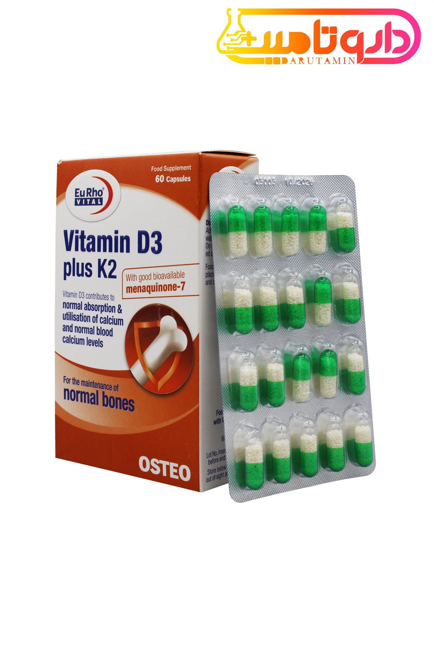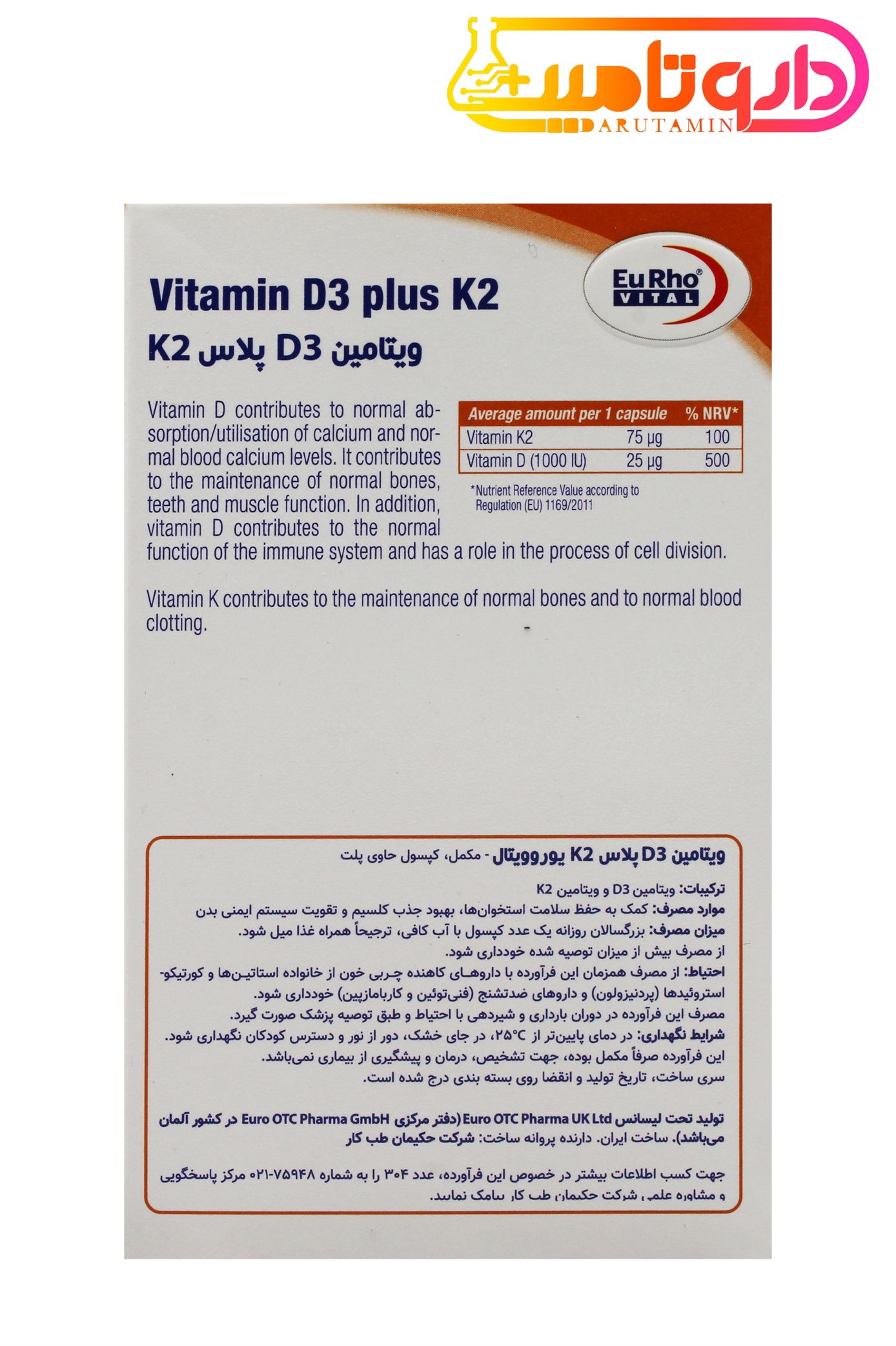 Eurho Vital Vitamin D3 Plus K2 Capsuleصادر کننده مجوز