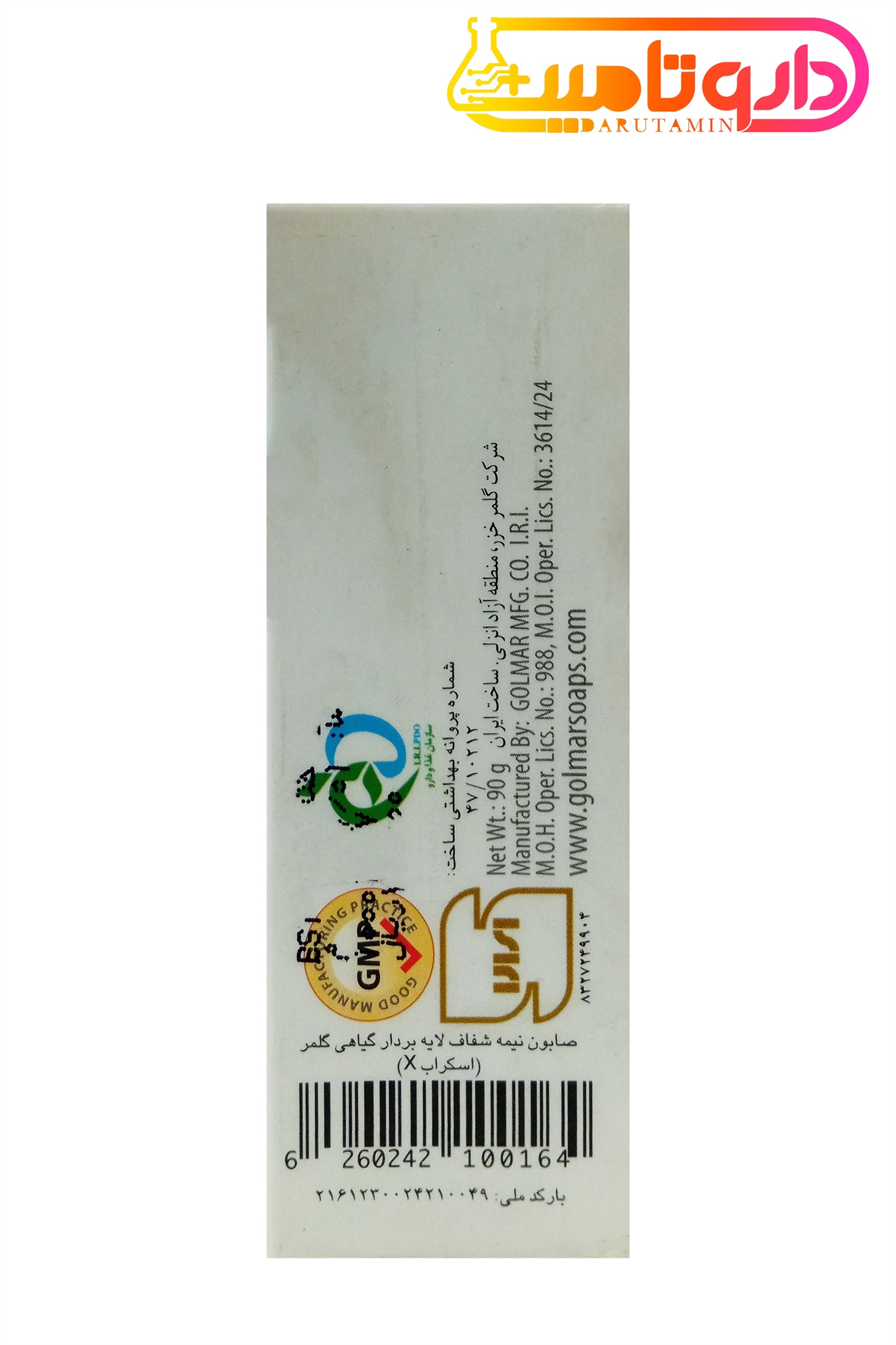 ترکیبات طبیعی و گیاهی: صابون لایهبردار گلیسیرینه گلمر از ترکیبات طبیعی و گیاهی ساخته شده است.