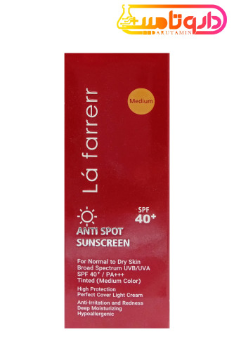 Lafarrerr Anti Spot Sunscreen Cream SPF40+ Tinted For Normal And Dry Skin Mediumصادر کننده مجوز