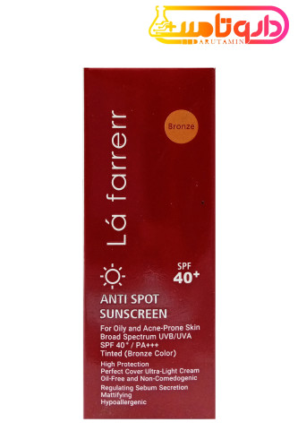 Lafarrerr Anti Spot Sunscreen Cream SPF40+ Tinted For Oily And Acne-Pron Skin Bronzeصادر کننده مجوز
