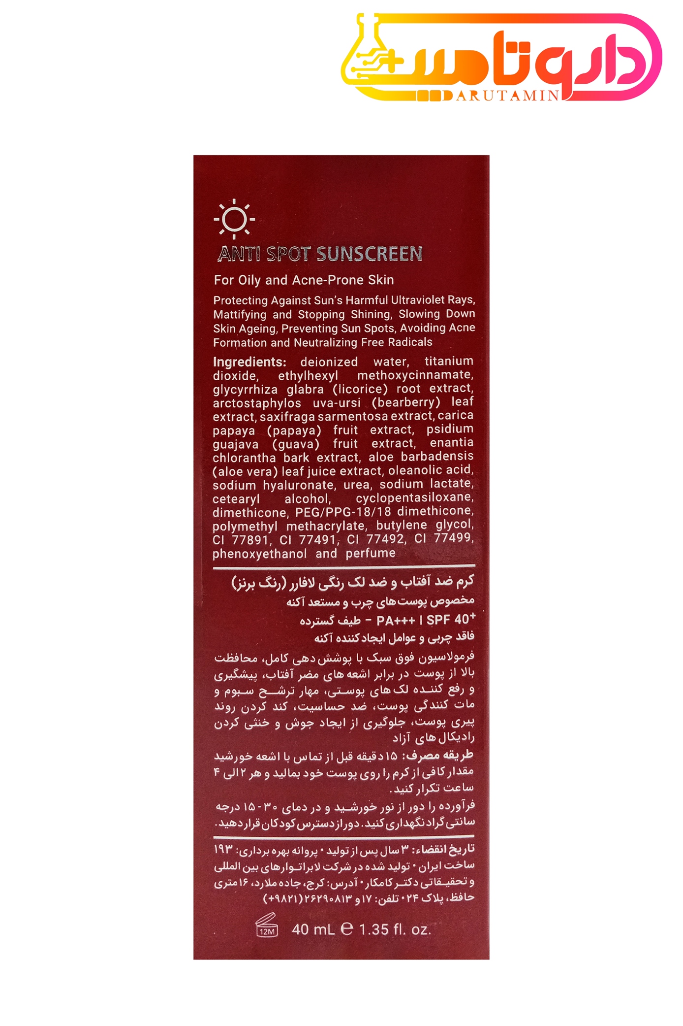 لافارر کرم ضد آفتاب و ضد لک رنگی +SPF40 مخصوص پوست های چرب و مستعد آکنه (برنز)
