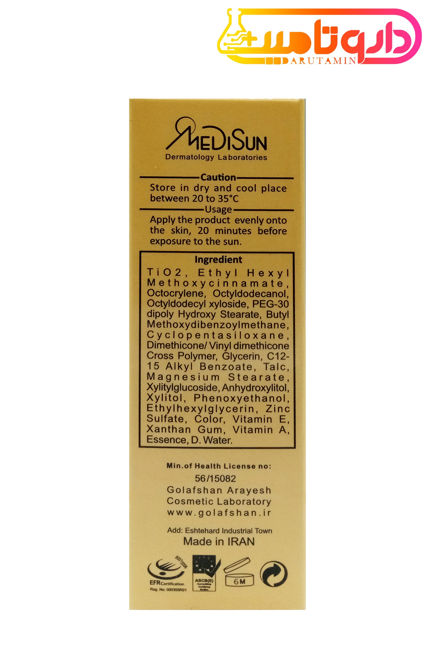 ترکیبات مدیسان کرم ضد آفتاب با پوشش کرم پودری +SPF40 مناسب انواع پوست