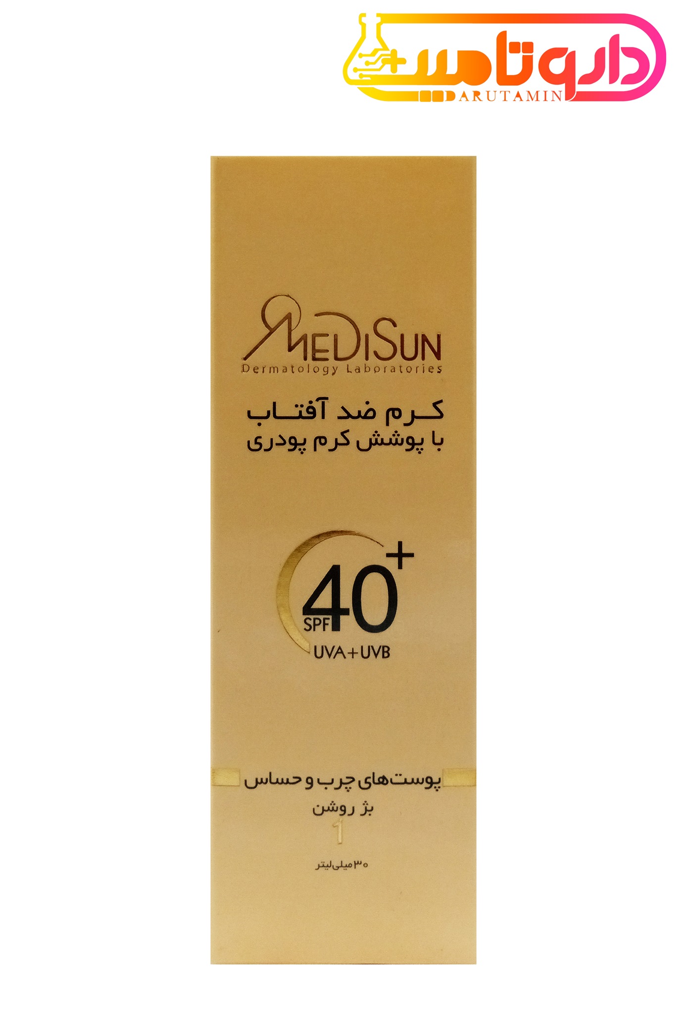 مدیسان کرم ضد آفتاب با پوشش کرم پودری +SPF40 پوست های چرب و حساس (بژ روشن 1)