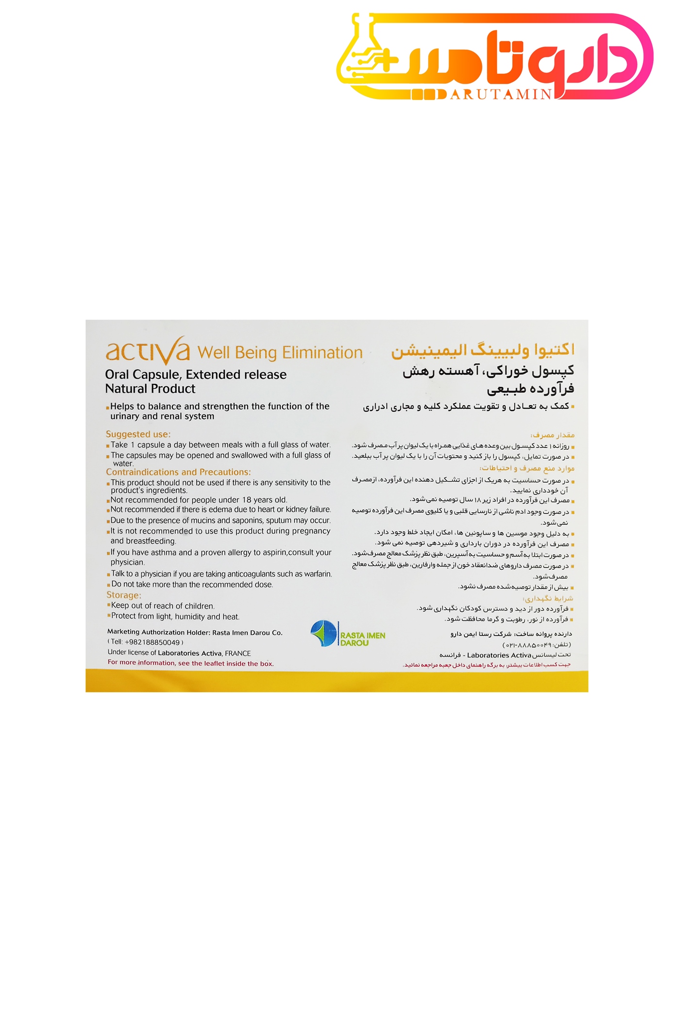 Rasta Imen Darou Activa Well Being Elimination Capsuleصادر کننده مجوز