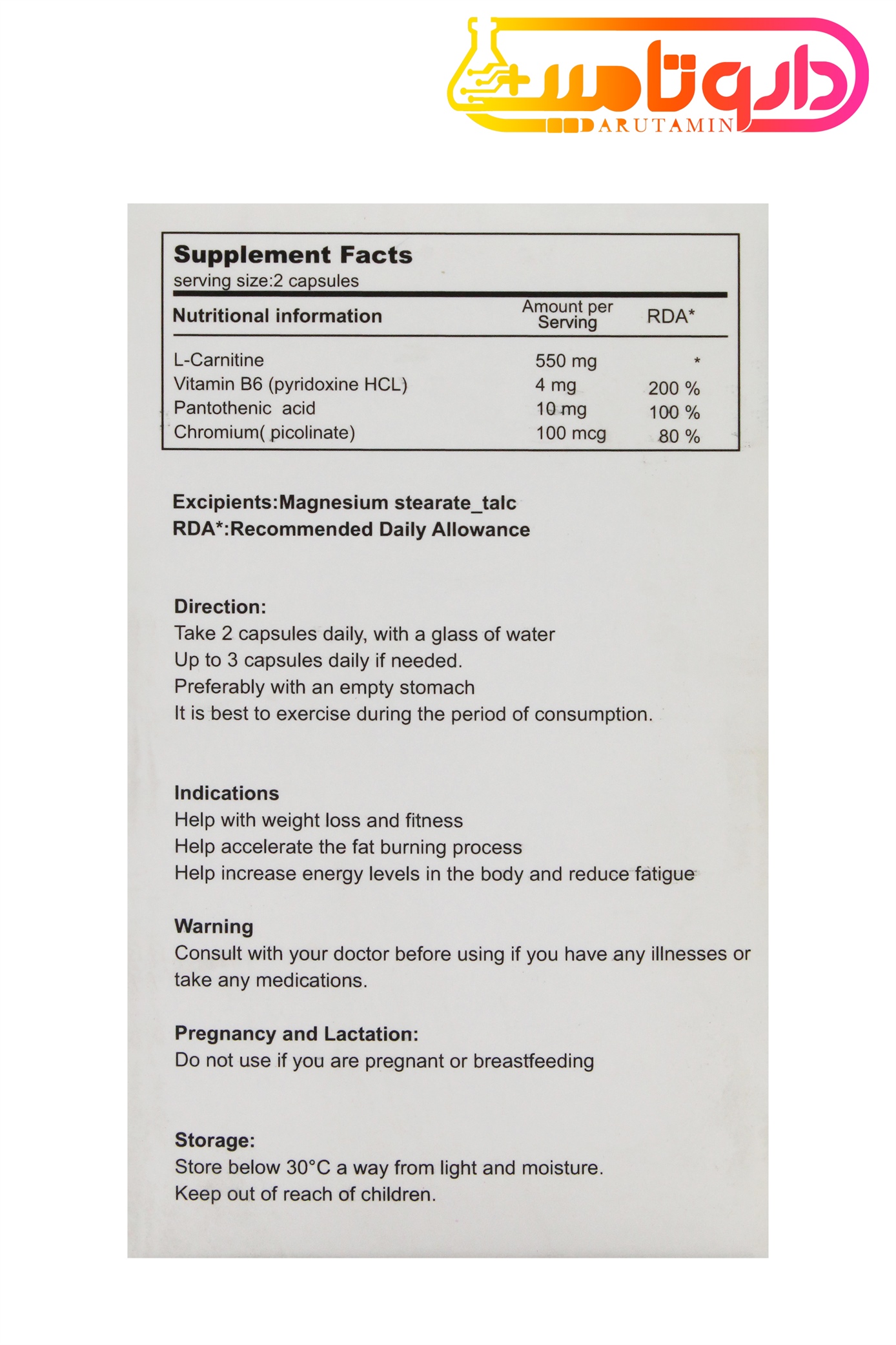 حاوی 550 میلی گرم ال کارنیتین