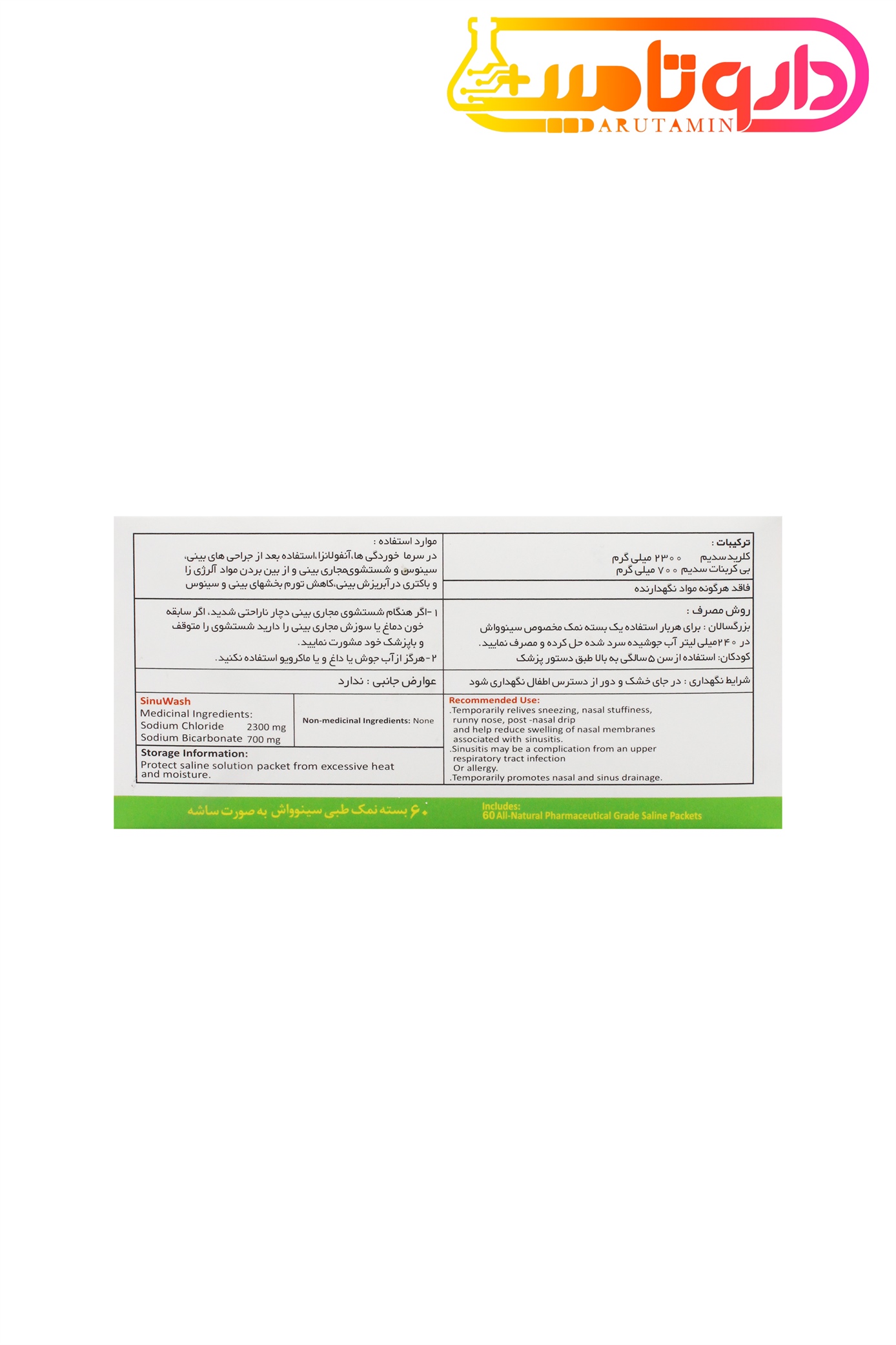 SinuWash Natural Saline Sachet 60 Pcsصادر کننده مجوز