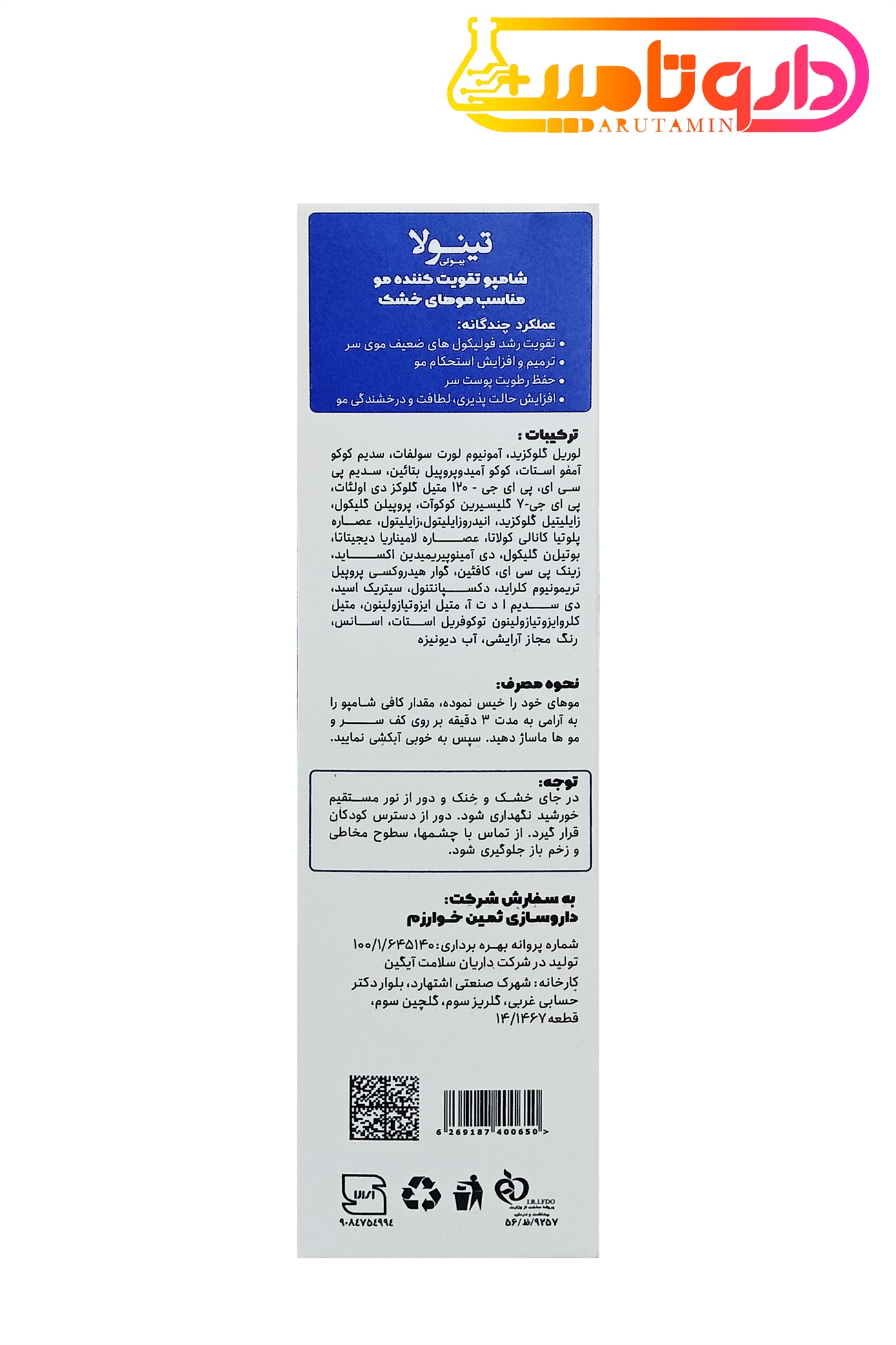 Tinola Fortifying Shampoo For Dry And Damaged Hair Typesصادر کننده مجوز