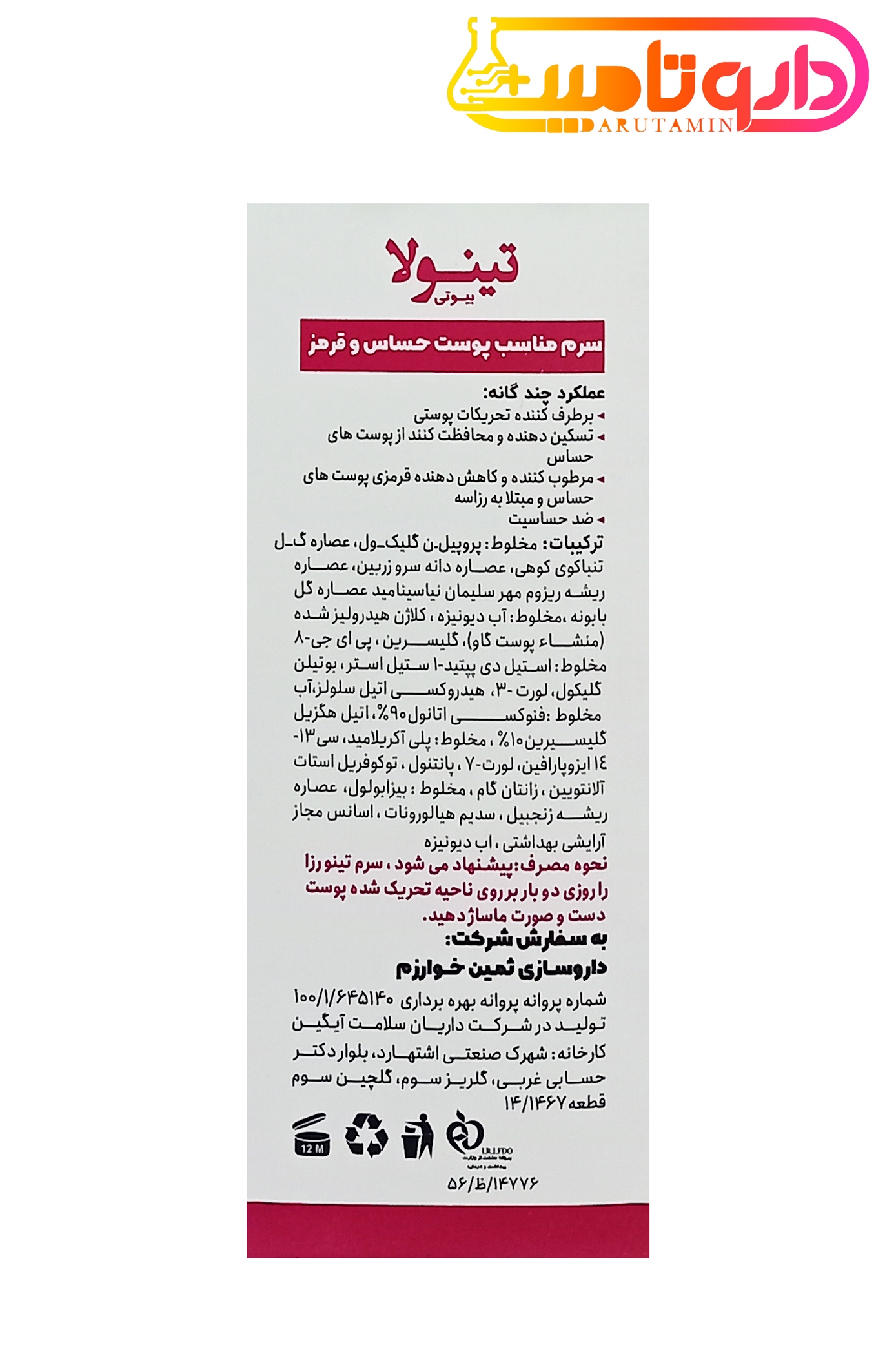 تینولا سرم مناسب پوست حساس و قرمز