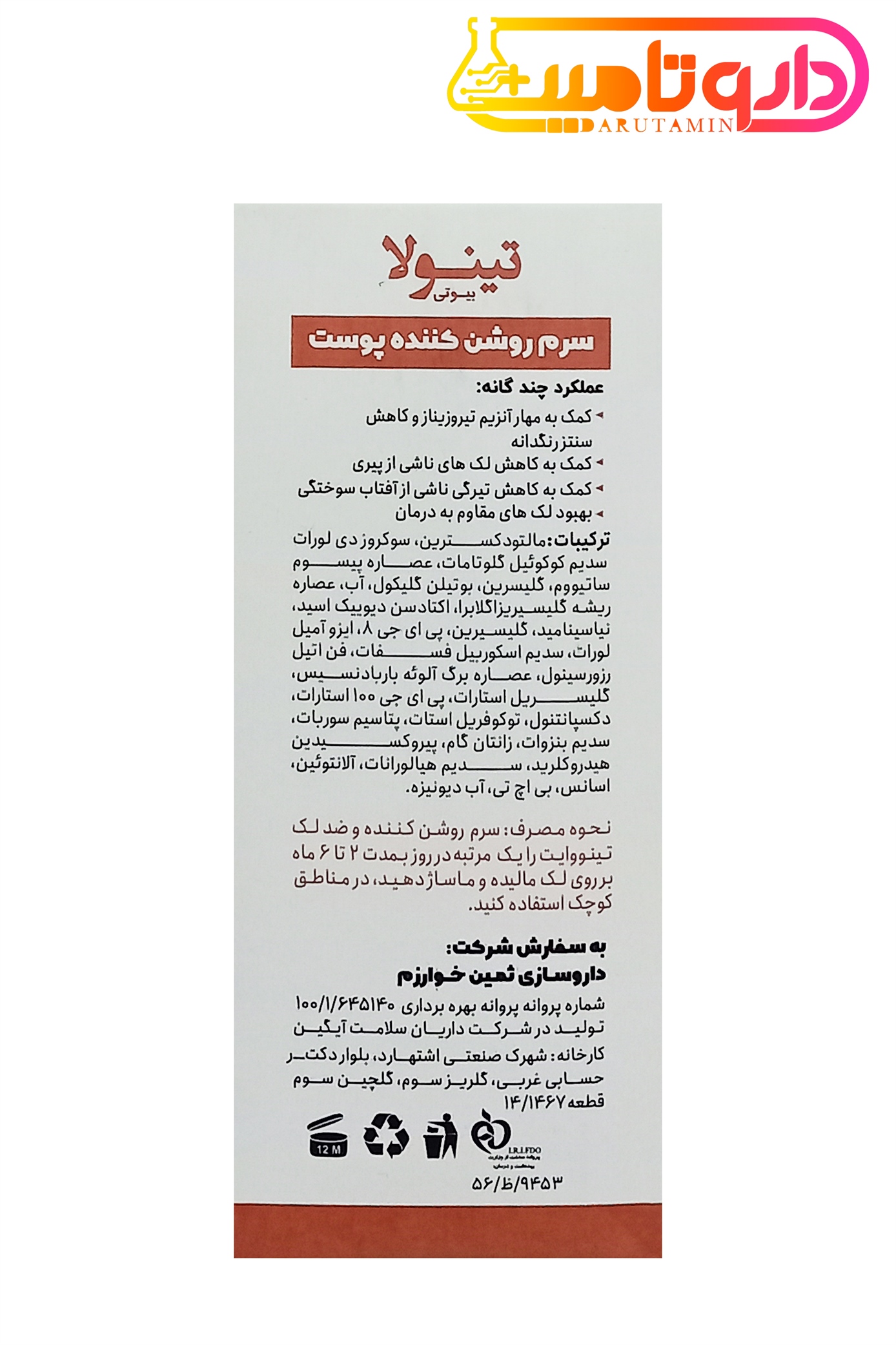 تینولا سرم روشن کننده پوست مناسب انواع پوست