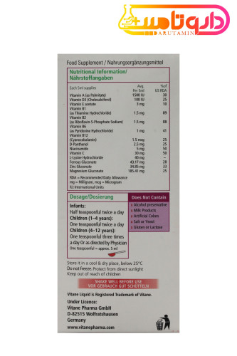 Vitane Pharma Vitane Oral Liquidصادر کننده مجوز