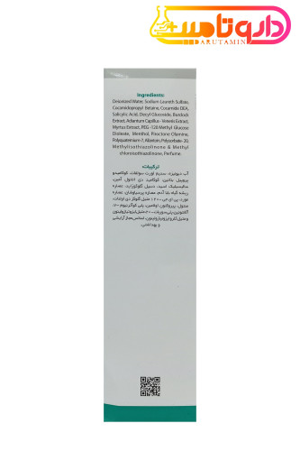 آب دیونیزه، عصاره ریشه گیاه بابا آدم، پلی کواترنیوم-۷، کوکامید پروپیل بتائین، متیل ایزو تیازولینون، کوکامید دی اتانول آمین، دسیل گلوکوزید، پی ای جی-۱۲۰ متیل گلوکز دی اولئات، عصاره مورد، عصاره پر سیاوشان، پلی سوربات ۲۰،پیروکتون اولامین، آلانتوئین، منتول، متیل کلروایزوتیازولینون، سدیم لورت سولفات، سالیسیلیک اسید و اسانس مجاز آرایشی و بهداشتی.