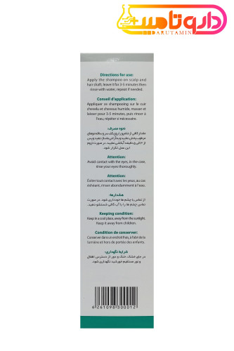 مقدار مناسبی از شامپو را بر روی موهای خیس مالیده و به آرامی ماساژ دهید. سپس موها را به مدت 2-3 دقیقه به حال خود رها کنید و سپس آبکشی کنید.
